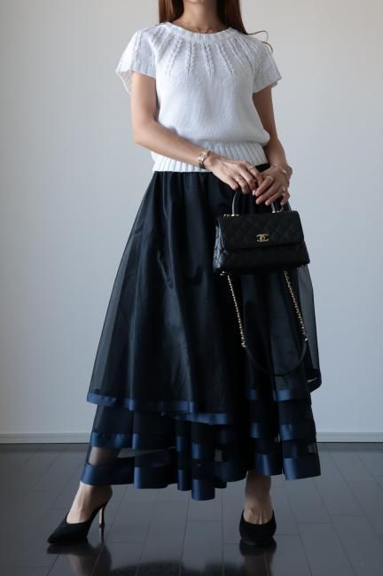 【MAISEL】satin piping layered tulle skirt / navy