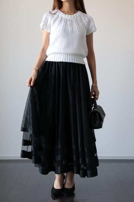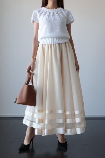 【MAISEL】satin piping layered tulle skirt / ivory