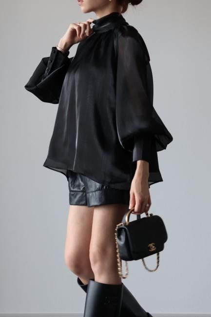 身ごろ部分は二枚構造、バルーンシルエットの袖部分は一枚構造で抜け感もあり、ショートボトムと合わせてtopsを主役にしたりデニムやスラックスとカジュアルに合わせるもおすすめです。