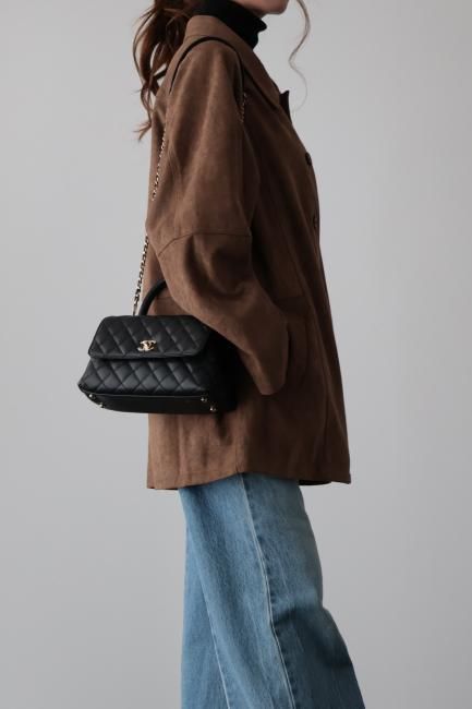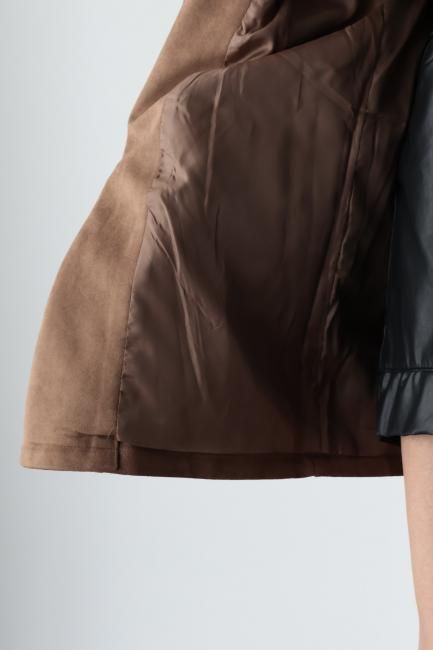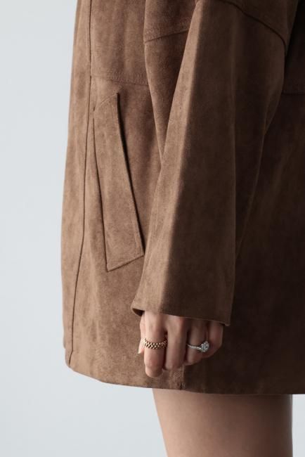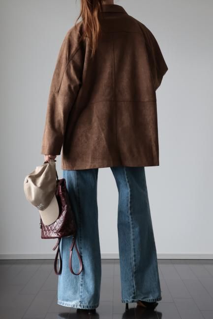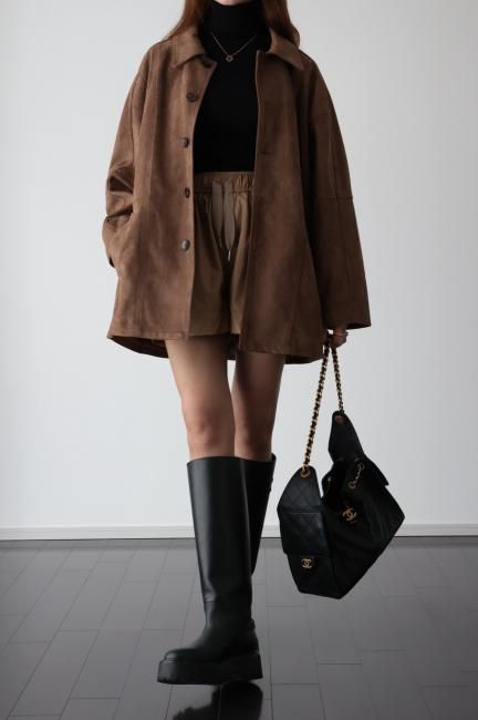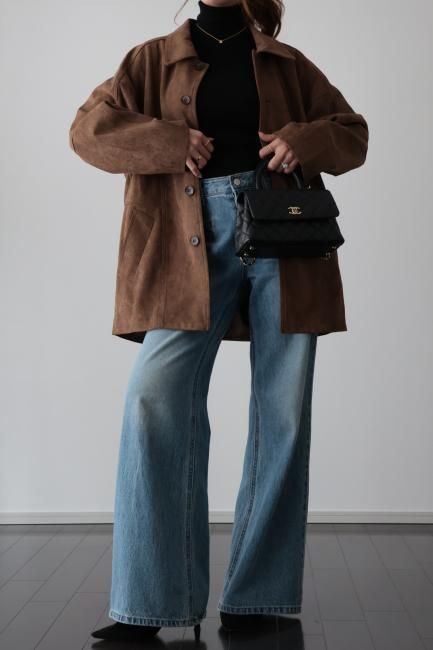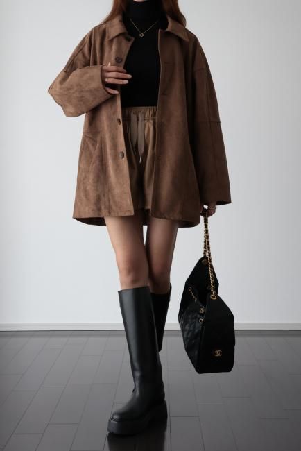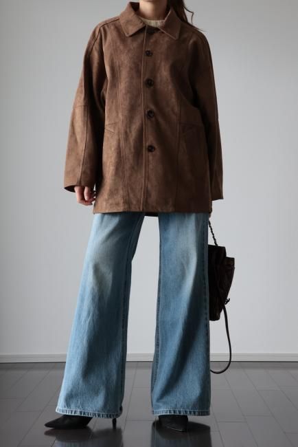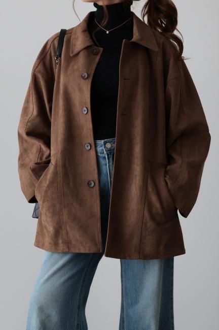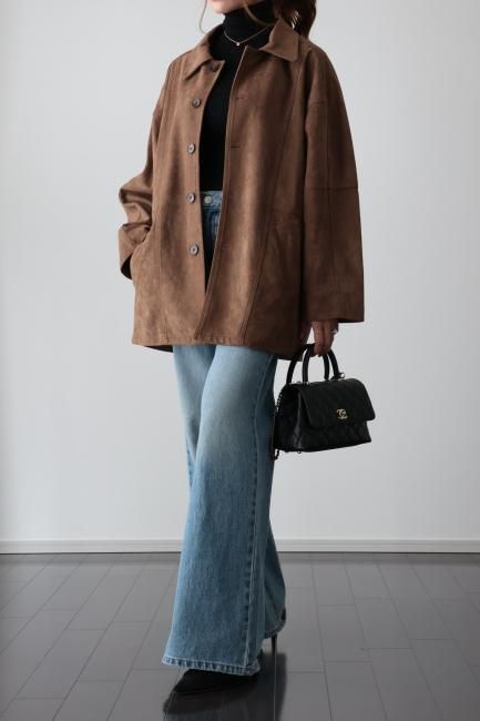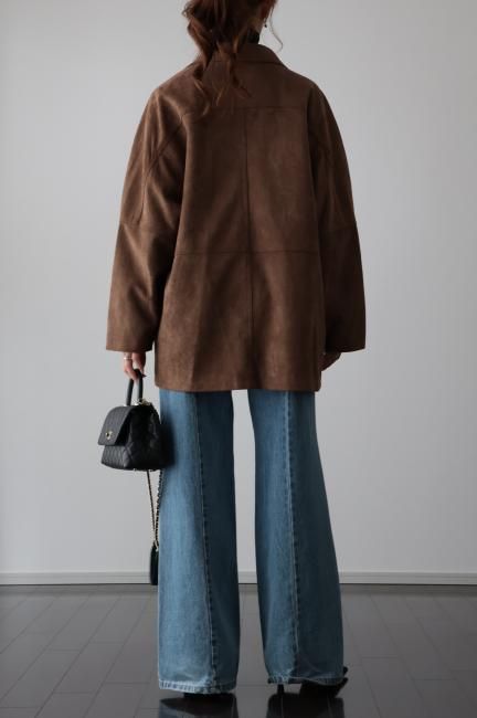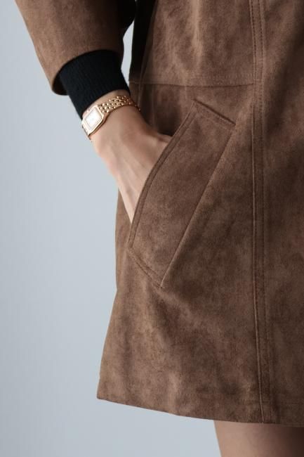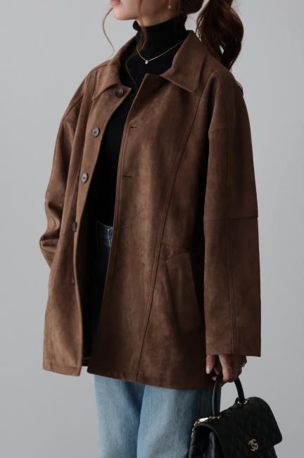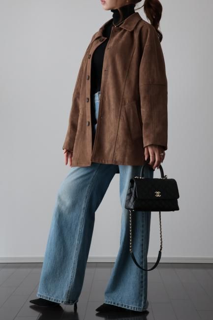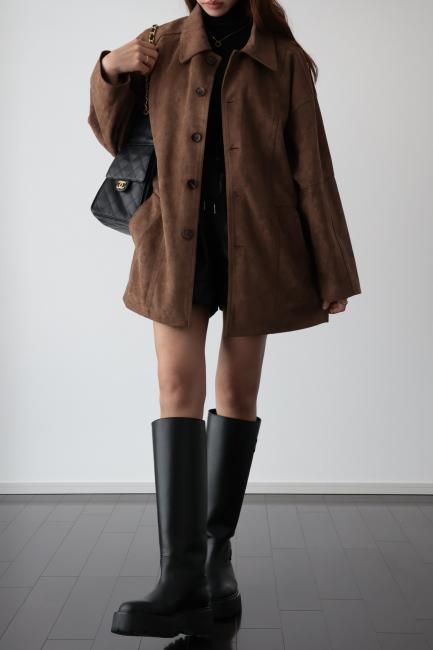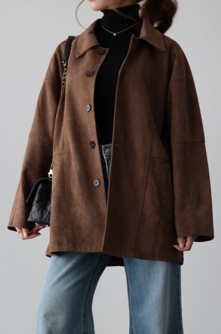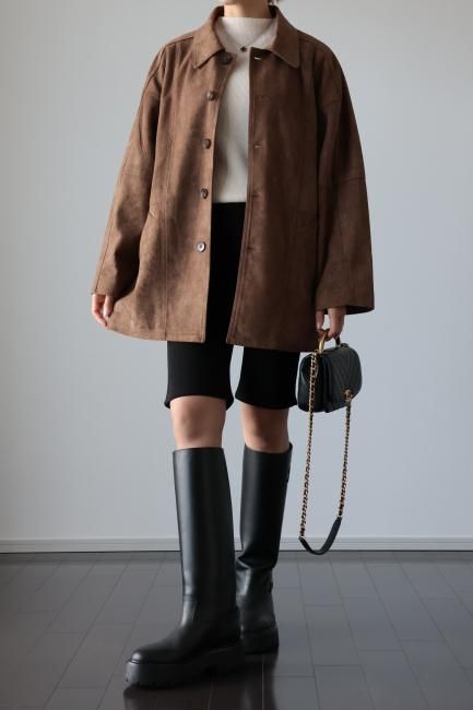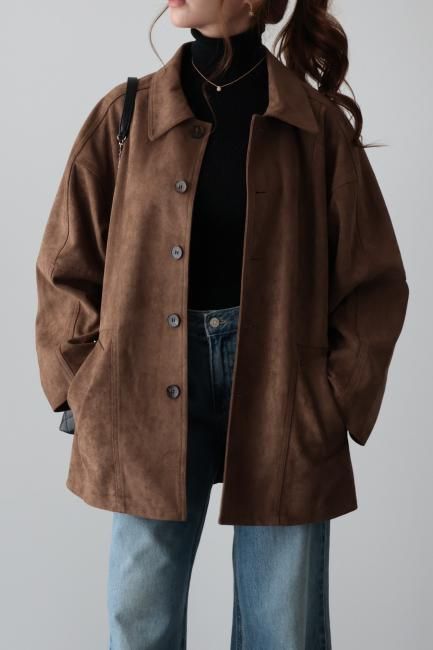 肌触りの良いスエード生地を使用したマニッシュな雰囲気でお召しいただけるスエードミディコート。