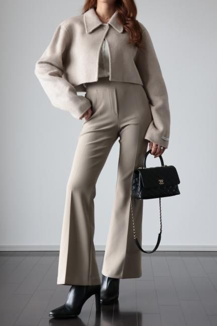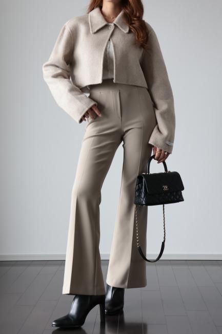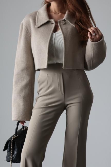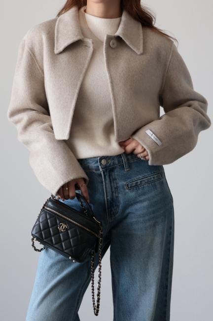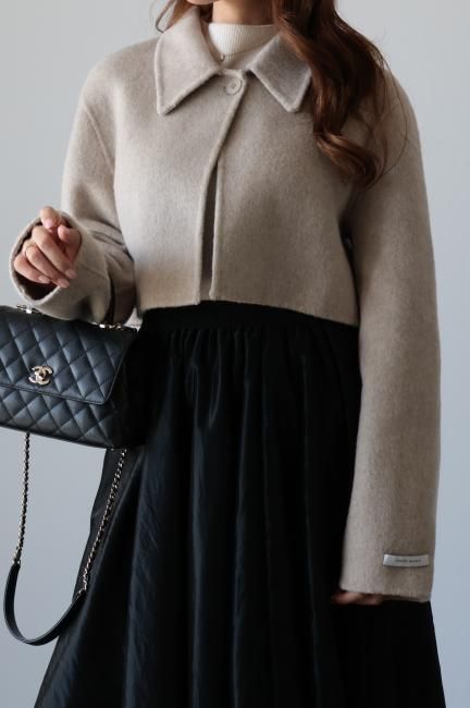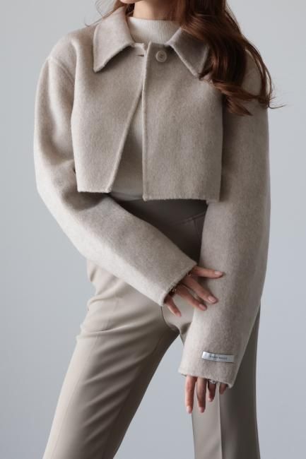 クロップド丈で、上半身に重心を持ってきてくれるため、脚長効果抜群の美シルエットなスタイリングが叶う上品なウールコートです。