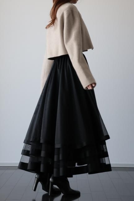 スカート:【MAISEL】satin piping layered tulle skirt / black