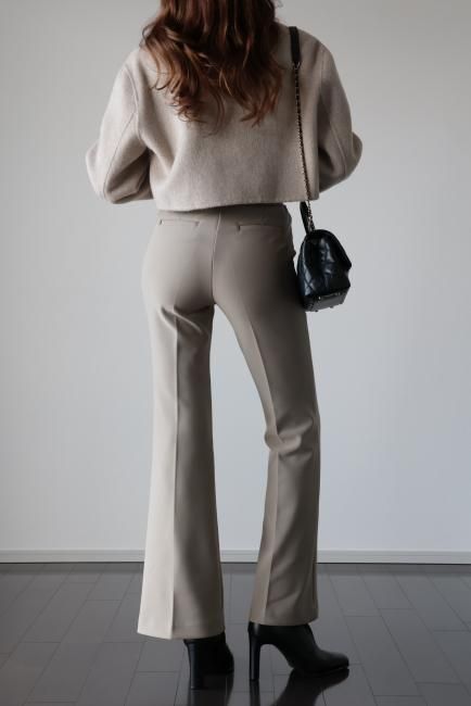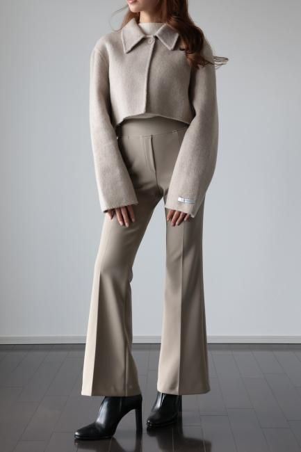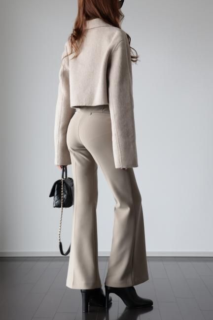 パンツ2:relax fitting high waist stretch flare pants / beige