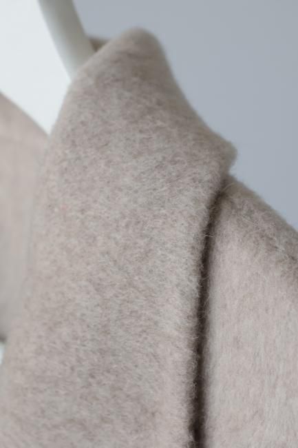 通常の分厚いウール生地を薄く圧縮し、特殊なミシンで縫製後の仕上げを人の手で縫って完成させたコートです。