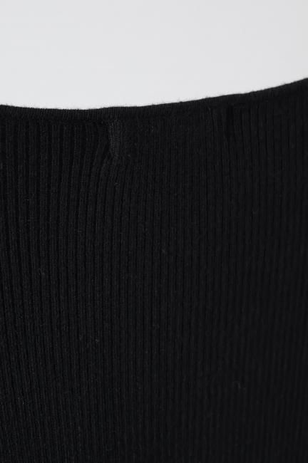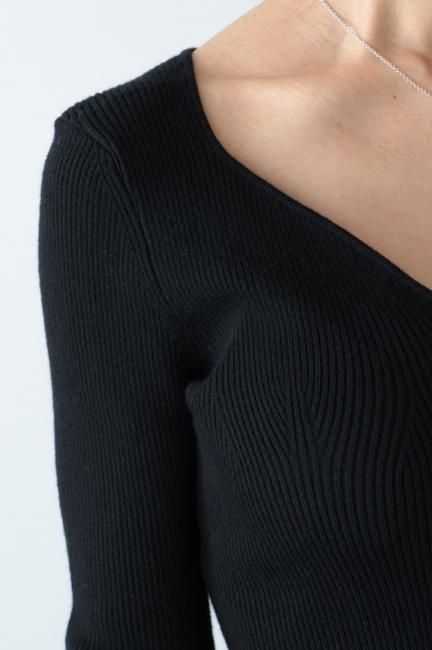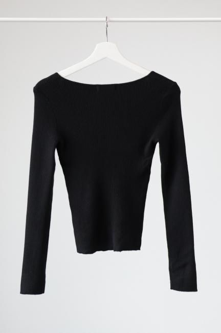 ハートネックがポイントになったレーヨンリブニットトップス。