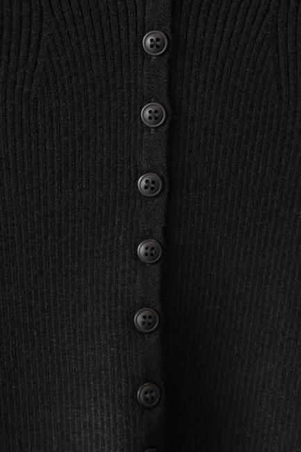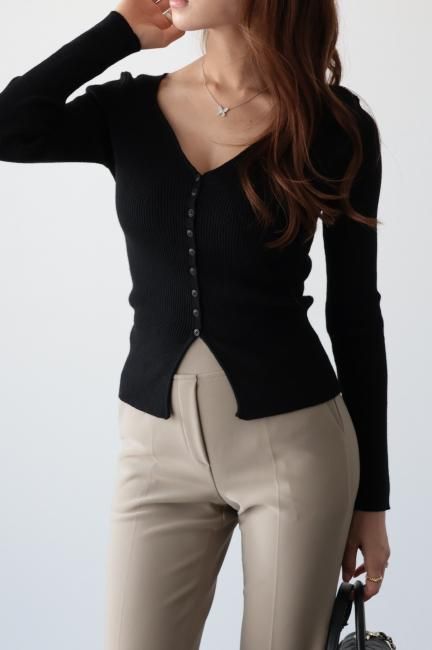 フロントには小さなボタンが付いており、ボタンを数個開けて中にキャミソールやタンクトップをレイヤードするのもおすすめです。