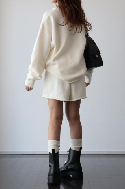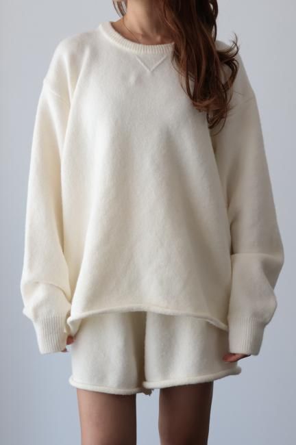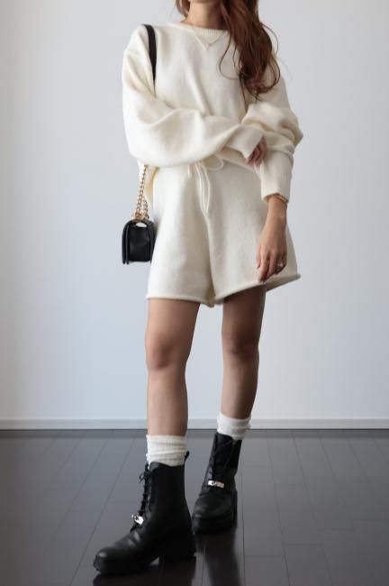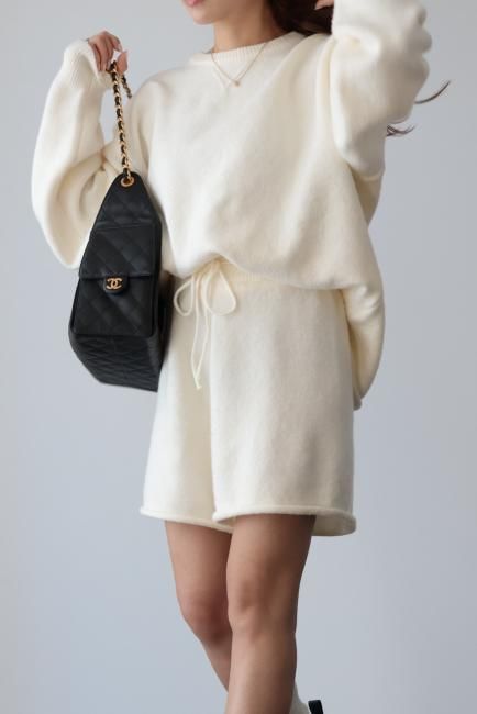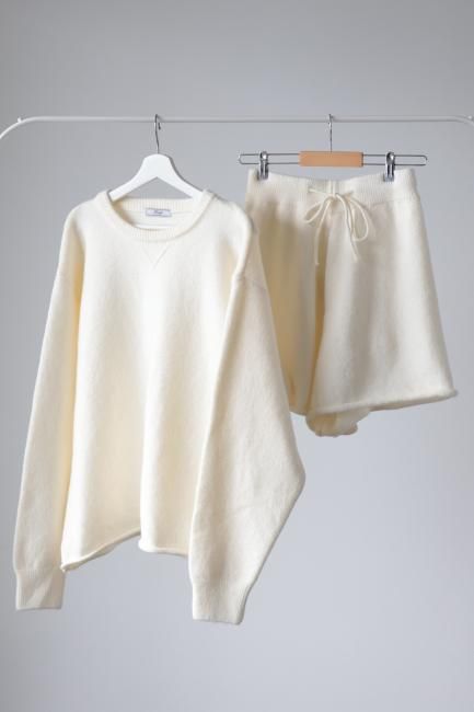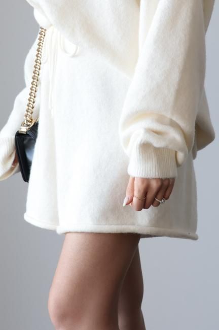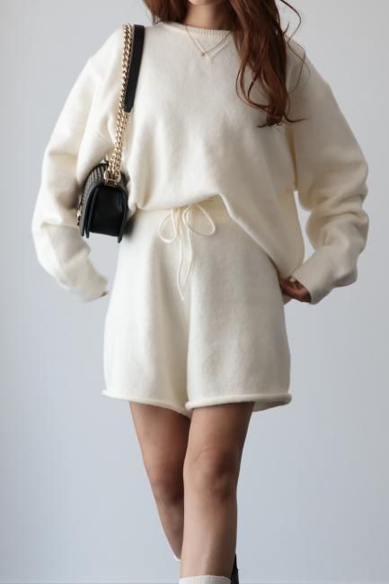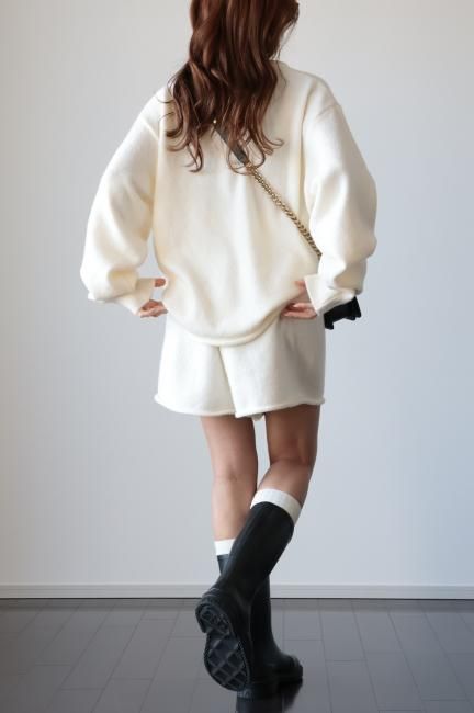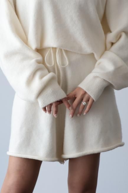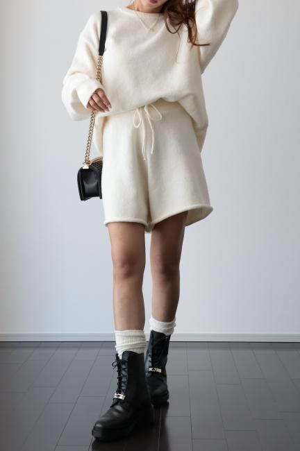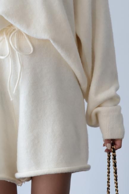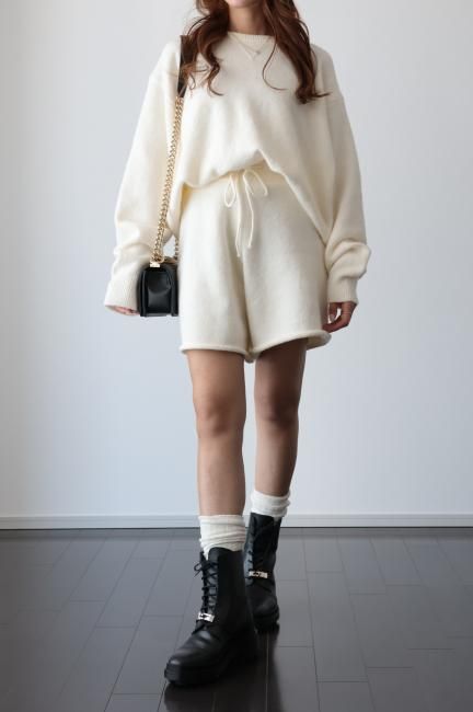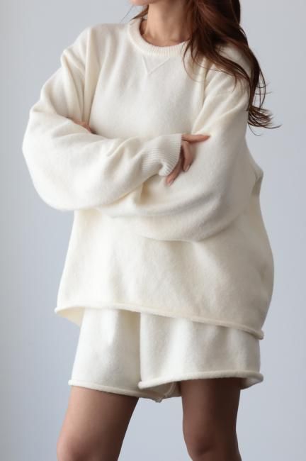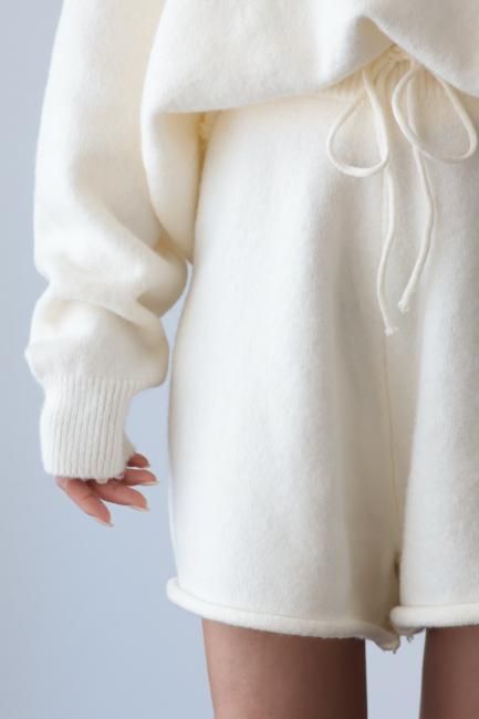 oversized cashmere mix top & wide leg short pants knit set up / ivory