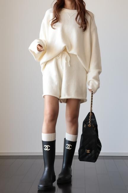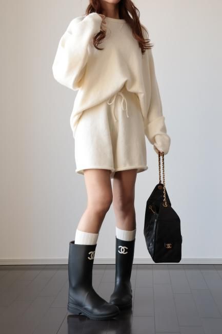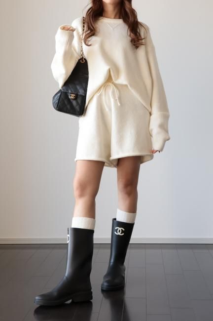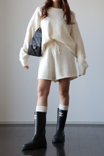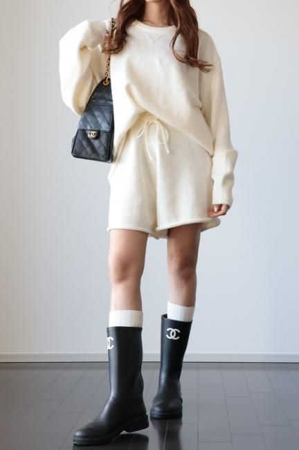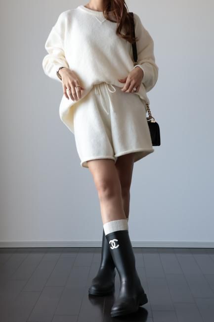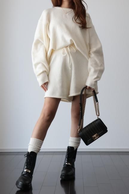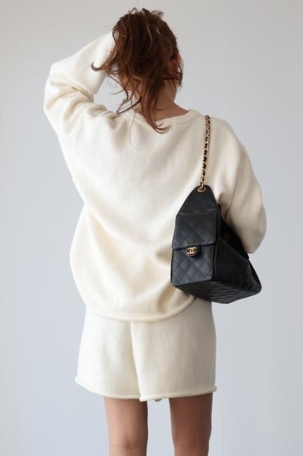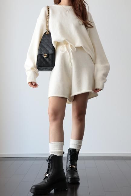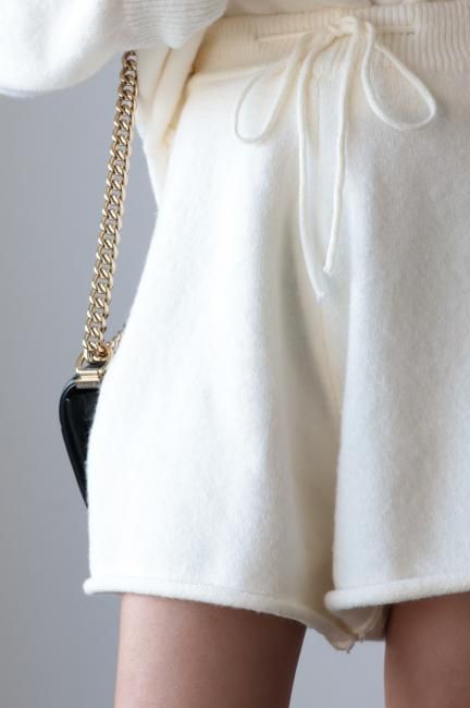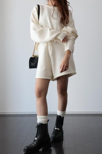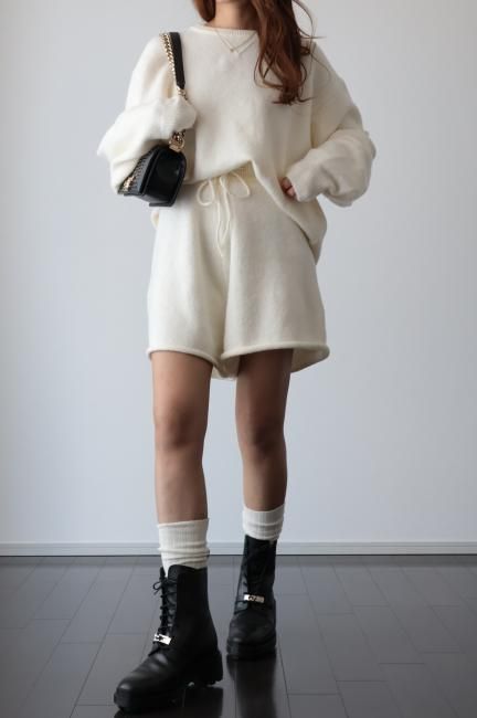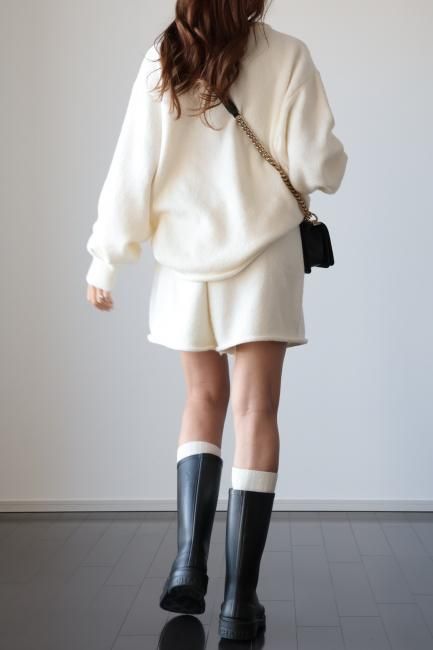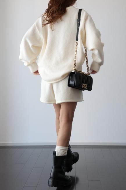oversized cashmere mix top & wide leg short pants knit set up / ivory