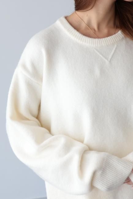 オーバーサイズのニットトップスに、裾が広がった台形デザインのニットパンツのSET UPで、様々なシーンでお召しいただける万能itemです。