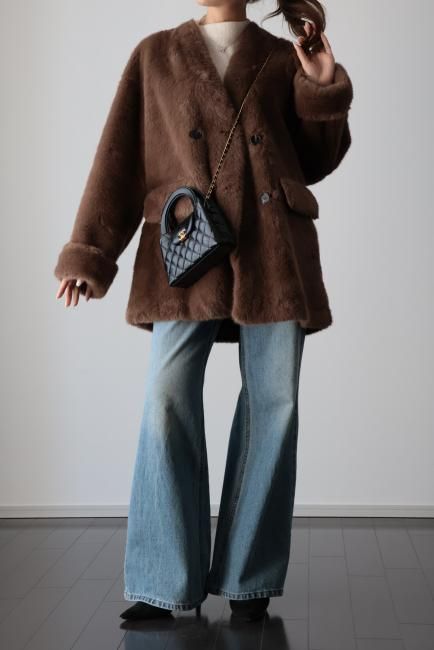 落ち着いたダークブラウンの色味で、折り返してお召しいただくカフスのデザインや、ポケットのボリューム感もポイントになっております。