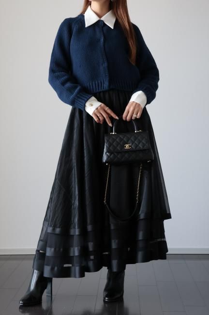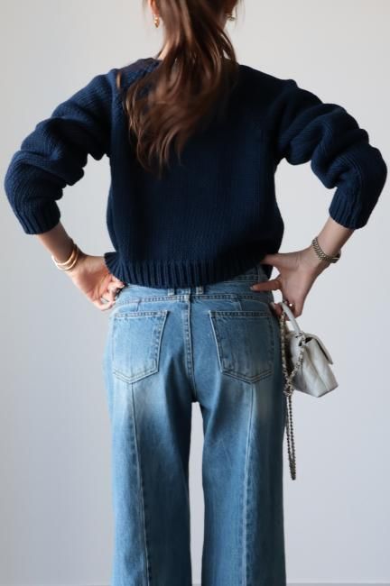 ジャスト丈で、ハイウエスト、ローウエストどちらのボトムスともバランス良く合わせていただけます。