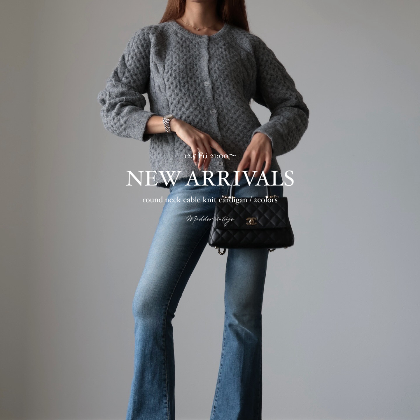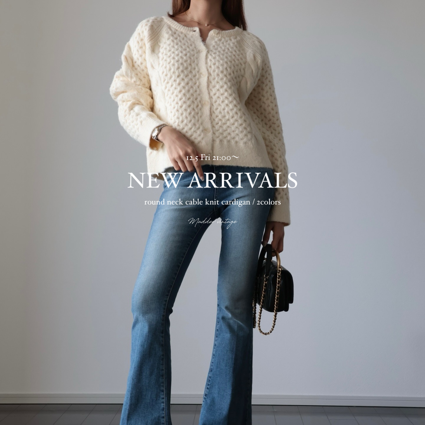 ▼round neck cable knit cardigan / 2colorways