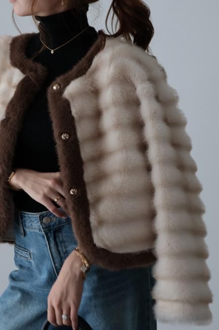 ミンク調のエコファーが目を惹く ウェーブデザインファージャケット。