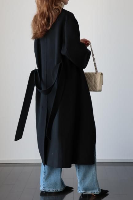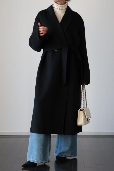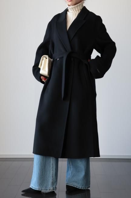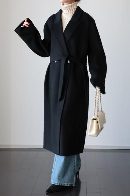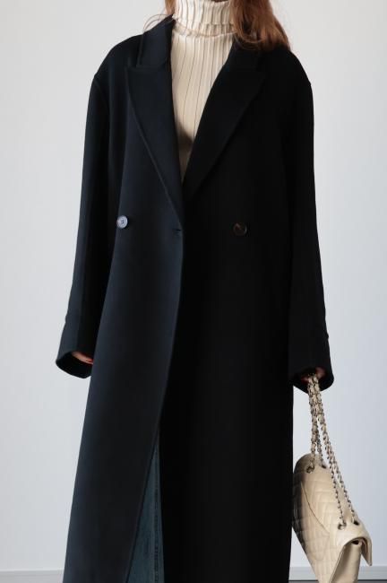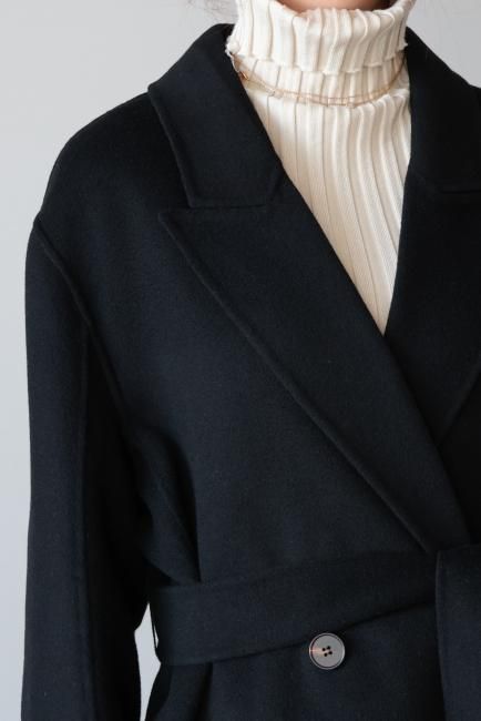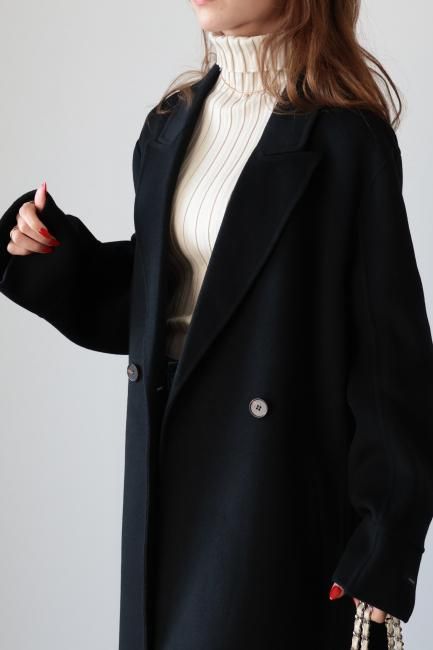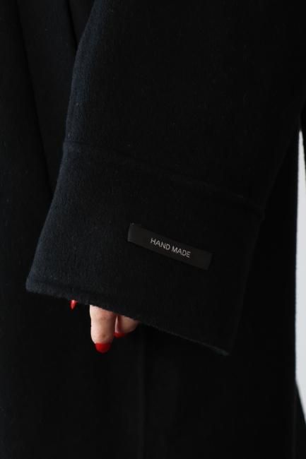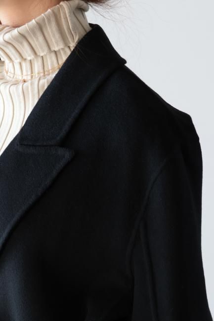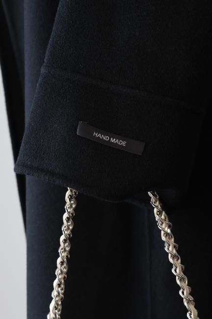 肌触りの良いハンドメイド仕様のウール生地を使用した ピーグドラペルウールコート。