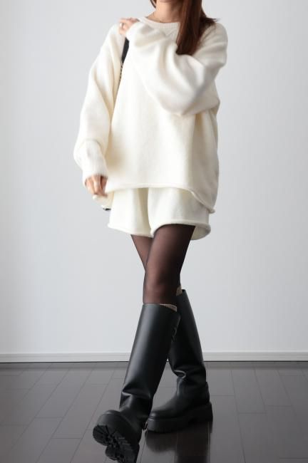 オーバーサイズのニットトップスに、裾が広がった台形デザインのニットパンツのSET UPで、様々なシーンでお召しいただける万能itemです。